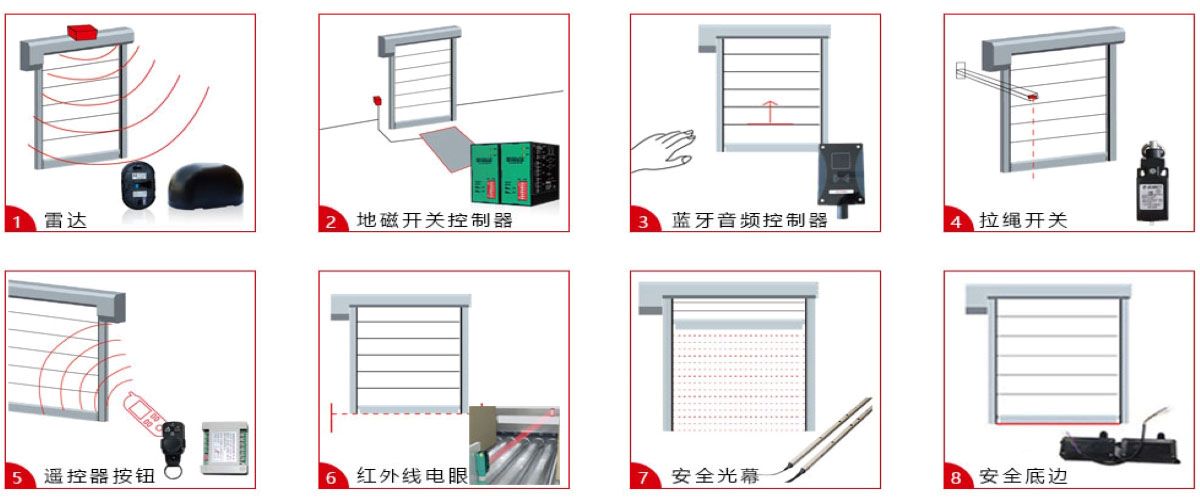 控制方式:可按鈕式、拉繩、遙控、微波、感應、磁環、手機APP開關門;