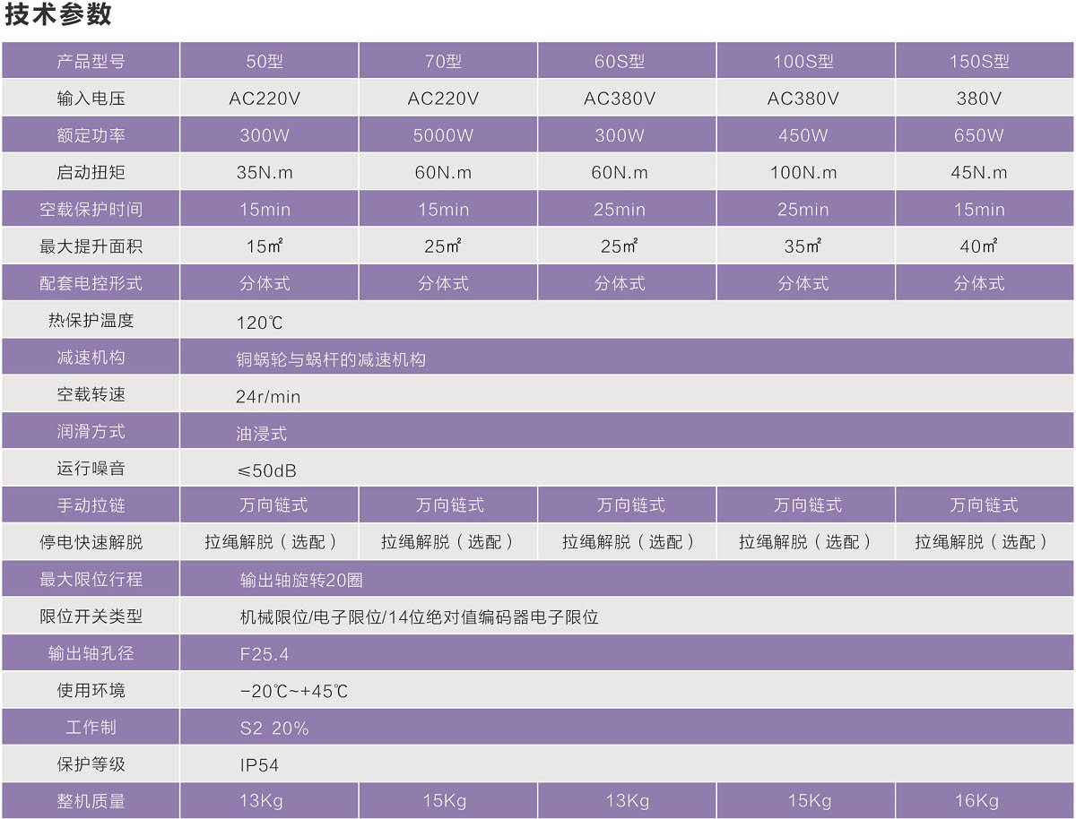此款開門機為工業滑升門專用軸驅型開門機。采用蝸輪蝸桿傳動,起動力矩大,運行噪音低,震動小;機電一體化,可配接遙控器,儲備電源等裝置;外形美觀,體積小重量輕,具有熱保護功能,安全,可靠;采用油浸設計,整機潤滑性能出眾,耐低高溫差值大;雙限位設計并配置蝸桿微調裝置,保證了滑升門上下行程的精準性;停電手動裝置采用錐度齒輪傳動及彈簧復位裝置設計,讓電動與手動開啟之間轉換自如,解決了行業中很多工業滑升門開門及手動和電動轉換不佳的弊端;配備紅外線安全氣囊、門中門開關等接口。