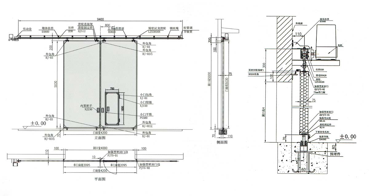 電動平移門門土建安裝結(jié)構(gòu)尺寸說明