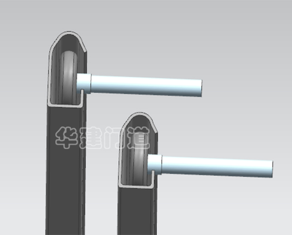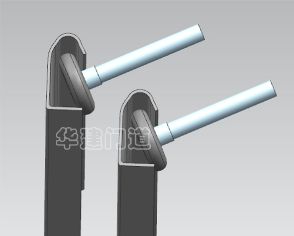 華建銅藝車庫門的軌道采用收口型(如圖),具有防止軌道中滑輪脫出軌道的功能,徹底解決了車庫門滑輪易脫落軌道的常見故障,保證了車庫門使用的順暢性,降低了車庫門的故障率及使用成本。 | 市場中低質車庫門的軌道采用開口型(如圖),軌道滑輪受各種外在因素的影響,容易脫出軌道,在車庫門的使用中一旦滑輪脫出軌道,那么車庫門將不能運行,需要維修,因此故障率及使用成本將升高。 | |