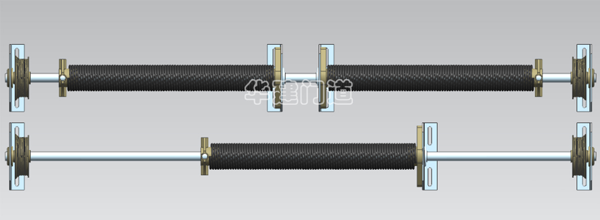 平衡系統是車庫門中非常重要的部件,平衡系統設計好壞直接影響著車庫門的使用壽命及故障率。華建門業的車庫門不管門體大還是小,重還是輕均配置雙數扭簧(如圖)而市場中低質車庫門配置單數扭簧,如車庫門小或只停一臺車的車庫甚至只配一根扭簧(如圖)。為什么要配置兩根以上的雙數扭簧呢?除了更好地平衡車庫門的重量外,還有一個非常關鍵的原因是:當車庫門關閉和開啟過程中,車庫門的扭簧有一個外伸和內收的力,采用一根扭簧或單數扭簧時這個力會作用到平衡系統的轉軸上,導致轉軸左右竄動,而轉軸的兩端安裝有車庫門鋼繩線輪,車庫門的提升鋼繩是繞在線輪上的,線輪左右竄動鋼繩就容易脫落,鋼繩脫落后車庫門將無法運行及使用。而華建采用兩根以上的雙數扭簧,一半為左旋簧一半為右旋簧,左旋簧產生的竄力向右,右旋簧產生的竄力向左,故左右竄力用兩相互制約而抵消,從而保證平衡轉軸不左右竄動,即車庫門鋼繩不易脫落,大大降低故障率。