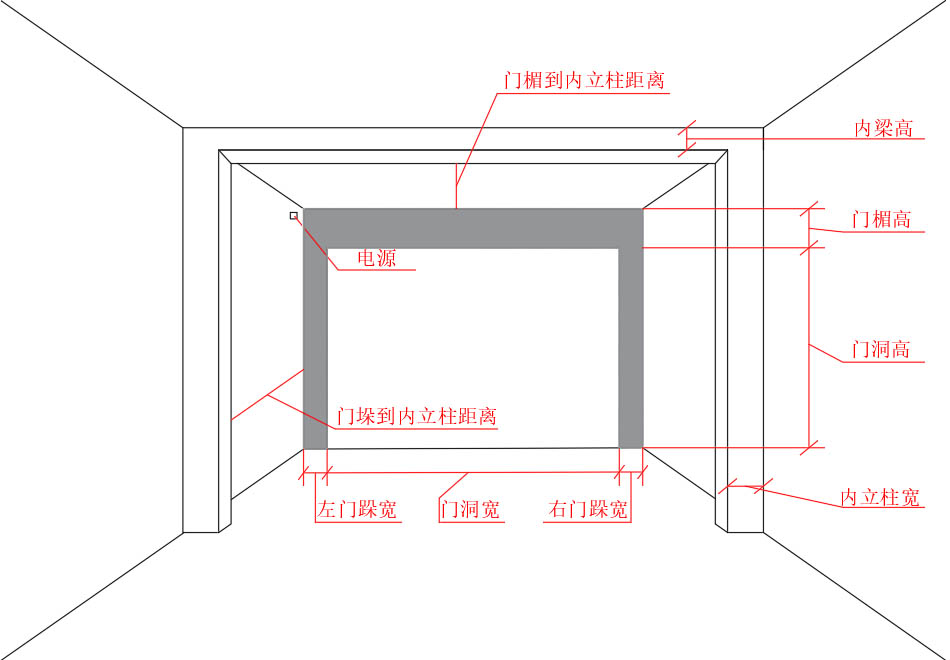 門楣高度:門楣有效尺寸應>門全開后的卷軸直徑+100mm,卷軸直徑是隨門洞高度變化的;
