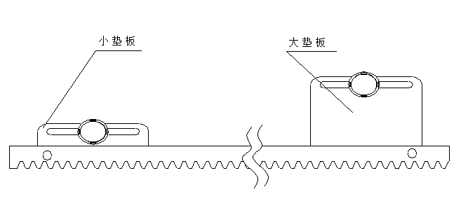 將固定柱焊接在門體上,注意固定柱應(yīng)排列整齊,保證齒條安裝后的離地高度應(yīng)符合要求;在裝齒條前先用離合調(diào)節(jié)手柄將主機(jī)的齒形離合器解脫(將離合調(diào)節(jié)手柄逆時(shí)針旋6圈左右);將齒條用螺栓固定在固定柱上,調(diào)整齒條上下位置,使齒條與齒輪嚙合正確,并保證1毫米的間隙;調(diào)整開門機(jī)與齒條的前后位置,保證齒條和齒輪有效嚙合。裝在門上的齒條應(yīng)排列整齊在同一直線上、齒條的總長(zhǎng)度與門體相當(dāng)。