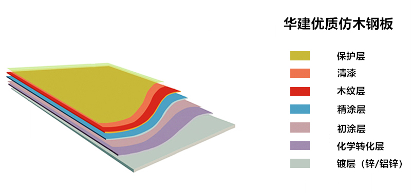 仿木鋼板的涂層種類可以分成:聚脂、硅改性聚脂、偏聚氟乙烯、高耐久性聚酯等;