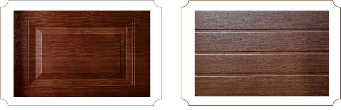 門體顏色:華建仿木車庫門常備木紋色為金橡木和黑胡桃木,也可根據客戶的要求定制不同的實木木紋色系生產;